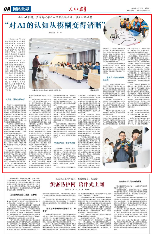 当前,人工智能已是世界各国的科研热点与竞争高地,正深刻推动教育变革创新。在AI浪潮下,许多高校开设人工智能通识课程。这门课教什么、学生怎么学、评价怎么样?本报进行了采访。