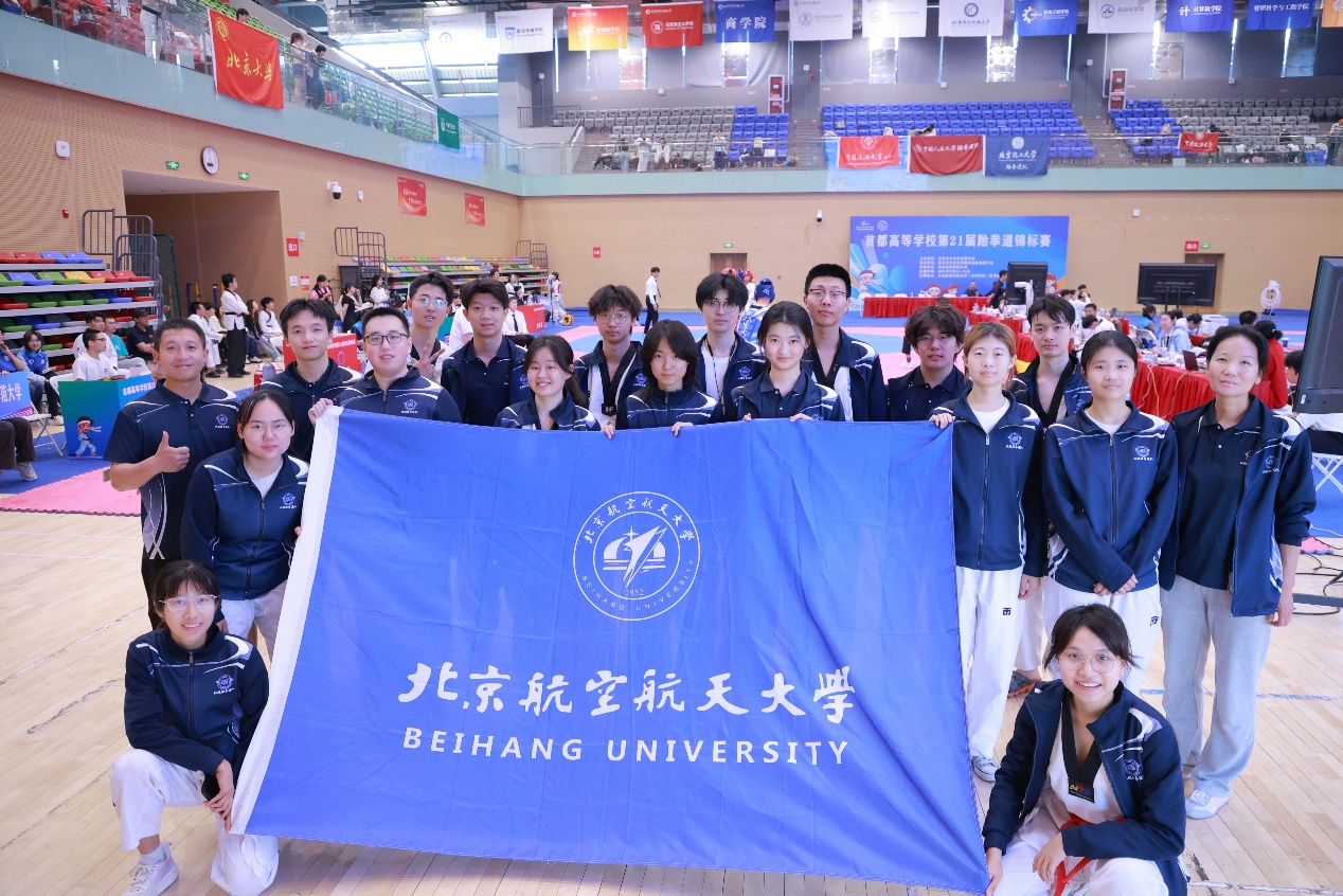 北航新闻网5月29日电(通讯员 刘承)5月24日-25日,首都高校第21届跆拳道锦标赛在北京信息科技大学(沙河校区)体育馆举行,比赛共吸引39所高校的637名运动员参赛。体育部汪芸、陈岩老师带领跆拳道队16名队员参赛。队员们发挥出色,斩获2项冠军、4项亚军和4项季军,刷新历史最好成绩。