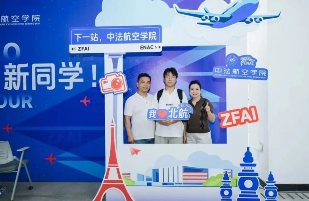暑假在皮具厂打工时收到录取通知书的湖南考生刘平凡,今天也来到了报到现场,“对北航的第一印象是校园很大!从学校东门进校,路上看到了停放的飞机和导弹,感受到航空航天的文化氛围特别浓厚。那一刻,我为自己考上北航而感到自豪。”