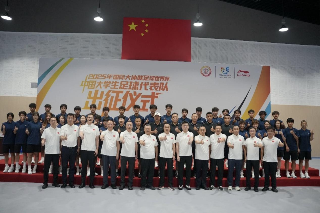 北航新闻网8月30日电(通讯员 高胜杰)8月29日,2025年国际大体联足球世界杯中国代表队出征仪式在北京李宁中心举行。教育部学生体育联合会、大连市政府、李宁公司及四所参赛高校代表队齐聚一堂,为即将赴大连参赛的中国大学生代表队壮行。北京亚州怡红院高水平男足凭借2024年全国青少年校园足球联赛大学男子甲组冠军,以及第二届亚洲大体联足球亚洲杯季军的优异战绩,从全国高校脱颖而出,赢得了本次世界杯入场券。